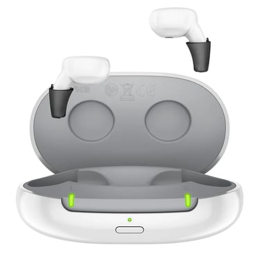 Un auricular por fuera con tecnología auditiva de gran rendimiento por dentro. Se adapta al instante, permite llamadas con manos libres y streaming, evita el sudor y el polvo, y te conecta a la conversación.