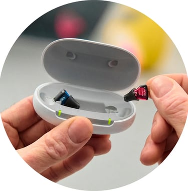 Ahora presentamos el único CIC recargable listo para llevar del mundo. Este dispositivo casi invisible marca una gran diferencia en cada conversación.